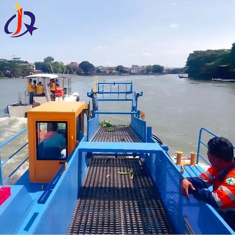 O barco de corte de herbas daniñas acuáticas para dragado de ríos fabricado por Jinqi adopta un deseño integrado multifuncional que combina múltiples sistemas nun só, ofrecendo unha experiencia de operación altamente eficiente para os clientes.