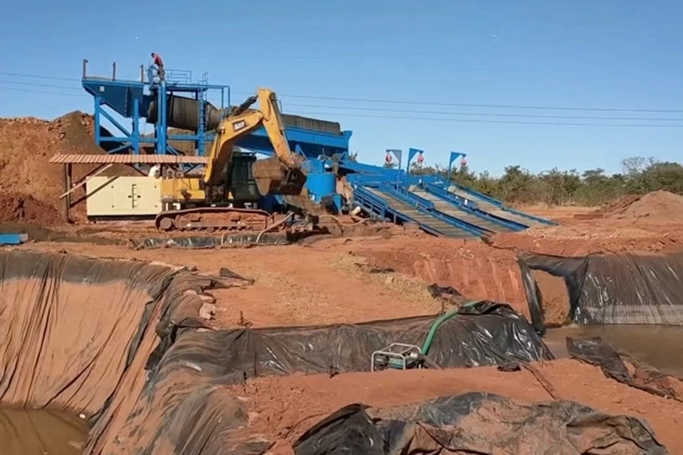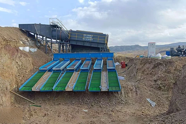 Planta de extracción de ouro móbil: é o principal equipamento para a extracción de ouro de placer en terra, con traslado flexible. Integra as funcións de proceso completo de alimentación, cribado e separación de ouro. Despois de que as pedras sexan eliminadas pola pantalla de trommel, a suspensión de mineral sepárase por equipos como caixas de esclusas e concentradores centrífugos.